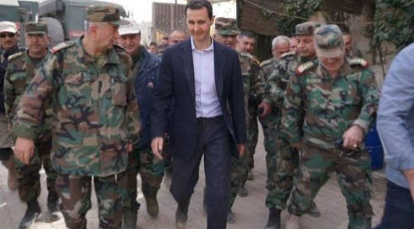 Foto: Assad aan de frontlijn in Oost-Ghouta, foto van zijn eigen Syrian Arab News Agency