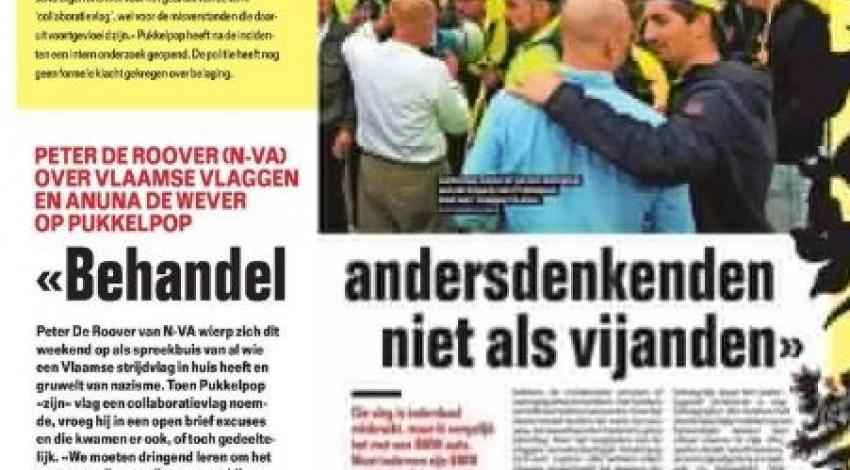 Peter De Roover aanvaardt de excuses, maar vindt ze halfslachtig. "De verstandigste reactie die ik heb gelezen, was die van Kyra Gantois, de kompaan van Anuna De Wever", zegt hij. "ZIj was er bij toen het gebeurde en ze schreef op sociale media dat daar op Pukkelpop ook mensen met Vlaamse vlaggen waren die hen niet hadden lastiggevallen en dat ze het onterecht vond om iedereen over één kam te scheren." Ook Anuna De Wever zelf heeft dit weekend trouwens laten weten dat ze niet achter de verwijdering van de vlaggen stond.