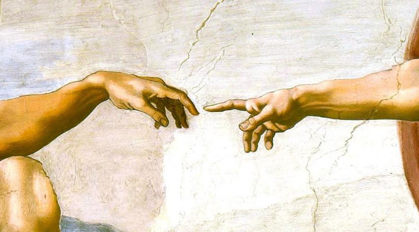 Detail met handdruk uit Michelangelo’s Schepping van Adam (Sixtijnse Kapel, ca. 1511)
