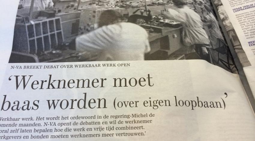 Werkbaar werk. Het wordt het ordewoord in de regering-Michel de komende maanden. N-VA opent de debatten en wil de werknemer vooral zelf laten bepalen hoe die werk en vrije tijd combineert. 'Werkgevers en bonden moeten werknemers meer vertrouwen.'