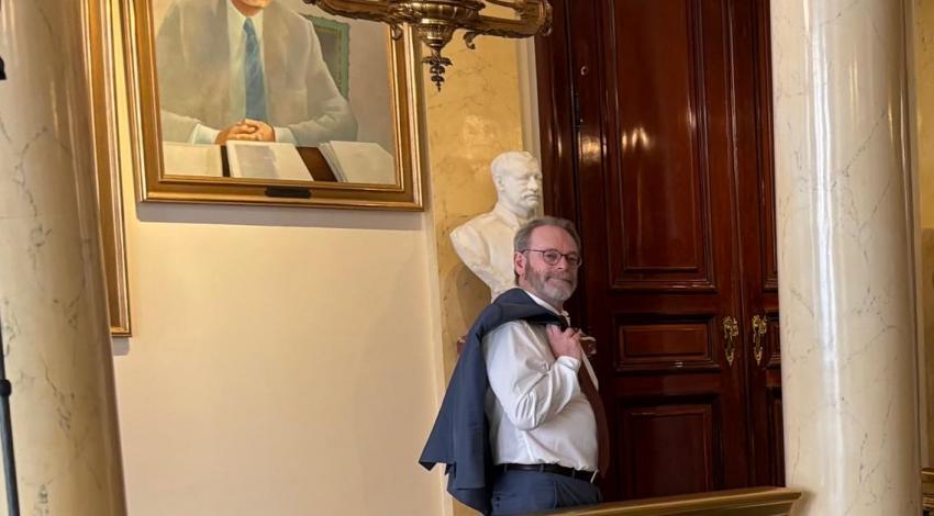 Volgende week is het precies een jaar geleden dat Peter De Roover plaatsnam op de voorzittersstoel van de Kamer van Volksvertegenwoordigers. De man die jarenlang een pijler was van de Vlaamse Volksbeweging, de koepel van Vlaams-nationalistische organisaties, is vandaag een van de hoogste gezagsdragers van de Belgische staat. La Libre sprak met hem in zijn kantoor, onder het portret van de Franse socioloog Alexis de Tocqueville (1805-1859), een houtskooltekening van zijn zoon, die met behulp van artificiële intelligentie verbeeldde hoe Tocqueville er op oudere leeftijd zou kunnen uitgezien hebben.