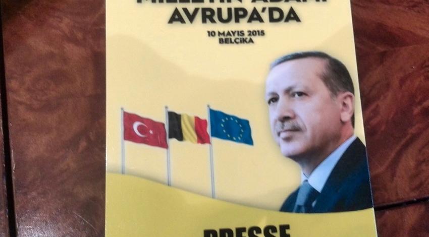 Foto: perskaart voor het Erdoganoptreden in de Ethias Arena
