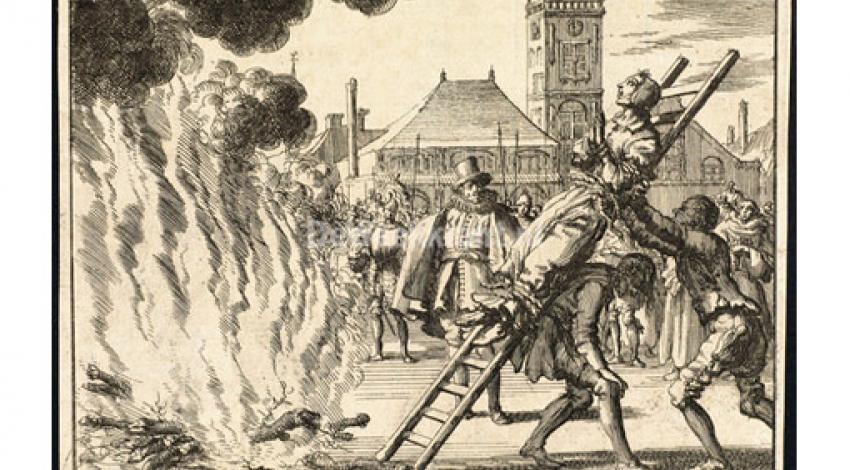 FOTO: Heksenjacht in Schiedam, dus voor alle duidelijkheid: de prent beeldt niet Johan Swinnen af.