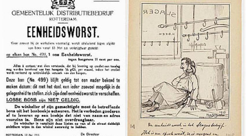FOTO: Tijdens de Eerste Wereldoorlog werden in Nederland bonnen voor eenheidsworst uitgedeeld, niet tot vreugde van iedereen.