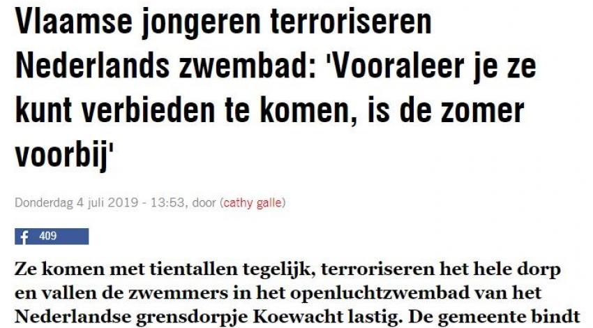 Die journalist van gisterenmiddag belde niet terug of liet geen boodschap achter maar vanochtend merkte ik waarover hij het had willen hebben, want hij wijdde wat bladruimte in zijn krant aan de Van Rooy-rel. Die was me gisteren ontgaan want ook twitter houdt mij echt niet elk uur van de dag bezig en het was daar dat de rel zich had ontsponnen. Kersvers Vlaams parlementslid voor het Vlaams Belang Sam Van Rooy tweette gisteren om 12:11 uur naar aanleiding van de talrijke zwembadincidenten: “Ik ken nog wel een ‘zwembad’ waar deze ‘lastige jongeren’ helemaal apart in hun ‘eigen zwemtijd’ mogen gaan zwemmen: de Middellandse Zee” met verwijzing naar een eerdere tweet van hem, twee dagen geleden, die blijkbaar niet de aandacht kreeg die hij verhoopte. In die oorspronkelijk tweet verwijst Van Rooy naar een artikel uit een Nederlandse krant waarin staat dat een Utrechts zwembad de overlast die lastige jongeren veroorzaken aanpakt door andere openingsuren te organiseren voor gezinnen, senioren en jongeren.