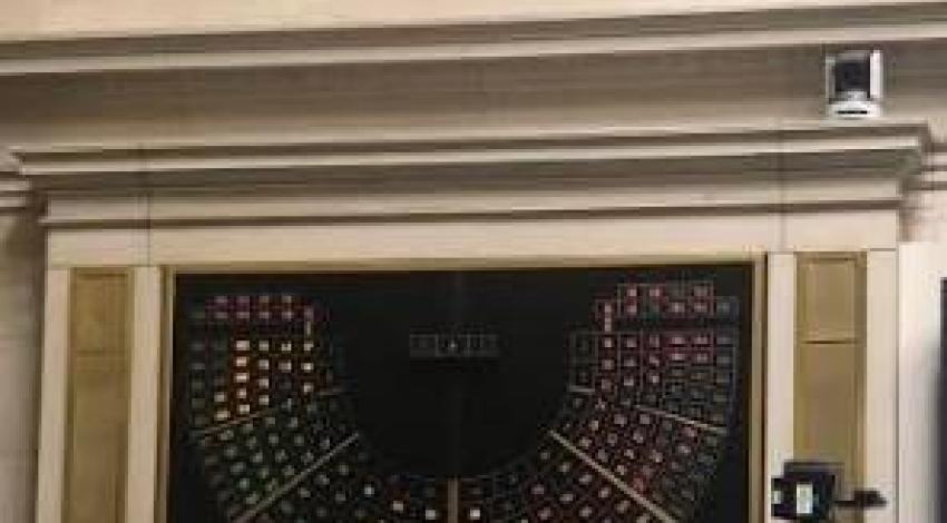 Foto: het stembord met rode neen-stem voor de verenigde linkerzijde op onze vraag om de subsidies van alle partijen terug te schroeven.