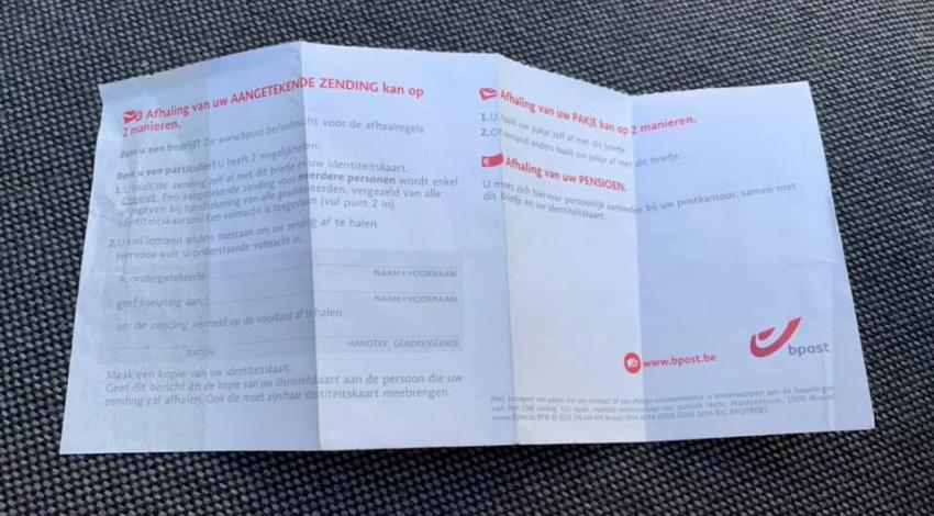 Donderdag 27 mei biedt iemand een aangetekende zending aan maar vindt geen gehoor aan onze op dat ogenblik verlaten woning. Was het de postbode? Ik weet het niet en het doet voor de essentie weinig terzake, al hoop ik van niet want onze postbode is een geschikte kerel. Eén uit de oude doos, met babbeltje en fluitend op of naast zijn B-Postfiets. Terug naar het verhaal.