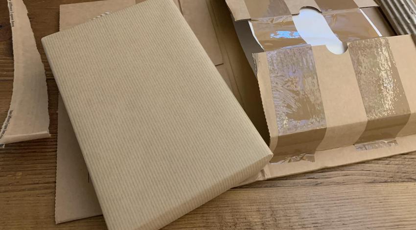 Verkerend in die gemengde gemoedsgesteltenis scheurde ik het karton open en vond daarin niet zomaar een haastig onder de flappen gepropt boek maar, oh dank fijnbesnaarde verzender daar ergens diep in Nederland, een keurig als naar de kunst in bruin papier ingepakt volume dat pas na ontdoen van het wikkel onthulde het bestelde te zijn.