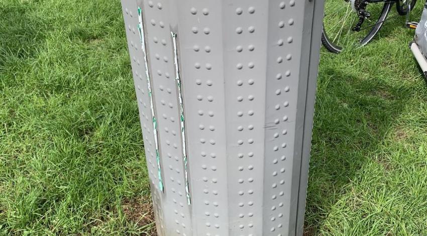 (Foto: Merk de peuk op, amper 10 cm van de vuilnisbak.