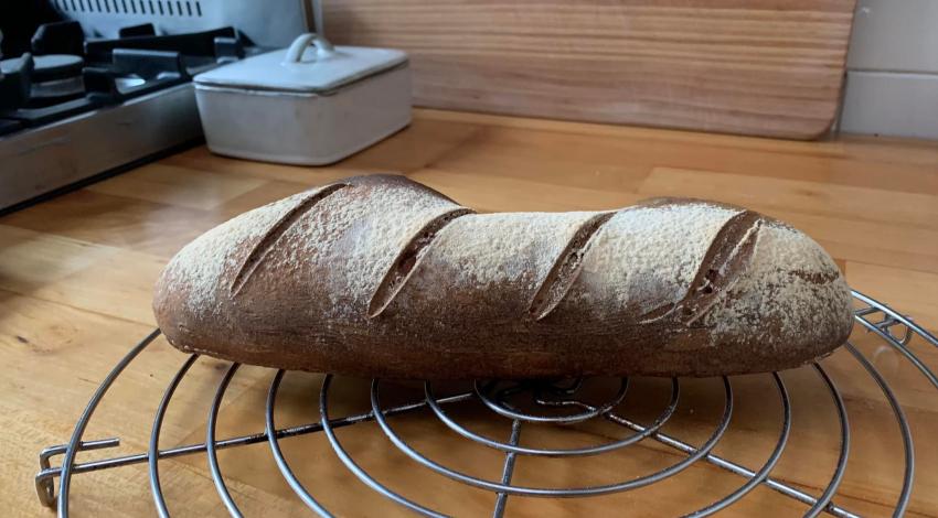Heb me vanmorgen, na de veilige aankoop van pistolekes bij de bakker, gewaagd aan het zelf bakken van een stokbrood. Het resultaat, ogenschijnlijk niet helemaal afwijkend van het concept stokbrood, ligt momenteel af te koelen. Hopelijk is het te vreten want ben er gisterenavond al aan begonnen. Het desemmengsel moest 12 uur koelen in de daartoe geëigende kast, vooraleer driekwartuur de oven ingeschoven te kunnen worden. De korst - ik ben dol op broodkorst - oogt veelbelovend, net niet verbrand. Helemaal mijn goesting.