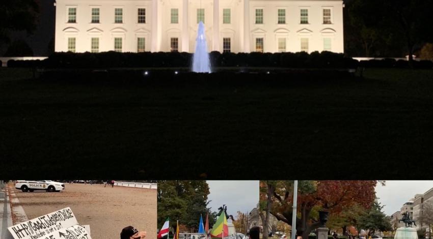 Aan de poort van het Witte Huis langs de kant van La Fayette ontplooit zich The Land of the Free.