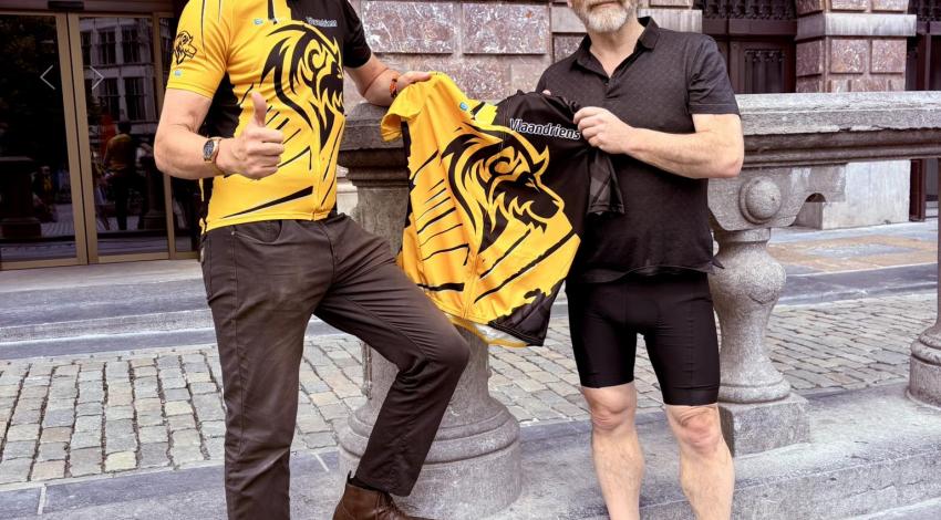 Foto: Het nieuwe vaderschap is dan toch geen meigeschenk gebleken maar op de valreep van die schone maand werd ik verheven tot de functie van sportdirecteur der Vlaandriens, uiteraard met zwartgele tooi. Later meer daarover maar nu toch al een beeld. (Merk zeker mijn voor de sport geschapen benenstel op!)