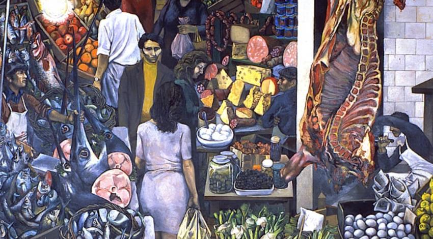 Het eerste melancholische moment ben ik alreeds voorbij. De auteur beschrijft la Vucciria, markt in Palermo die hij eind jaren ‘70 voor het eerst bezocht, en spreidt een rijk tableau uit aan verse etenswaren die onder de zonwerende maar geurvasthoudende luifels uitgestald lagen op zo’n wijze dat het de lezer niet verbaast dat de scène de Siciliaanse schilder Renato Guttuso kon inspireren tot geslaagd conterfeitselwerk.