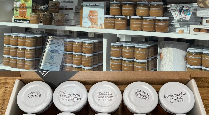 Een gezellige man met voorschoot vroeg me wat ik beliefde, daarmee onbedoeld een pijl dwars door mijn zelfvertrouwen schietend. Wat me beliefde in een pindakaaswinkel? Pindakaas uiteraard.