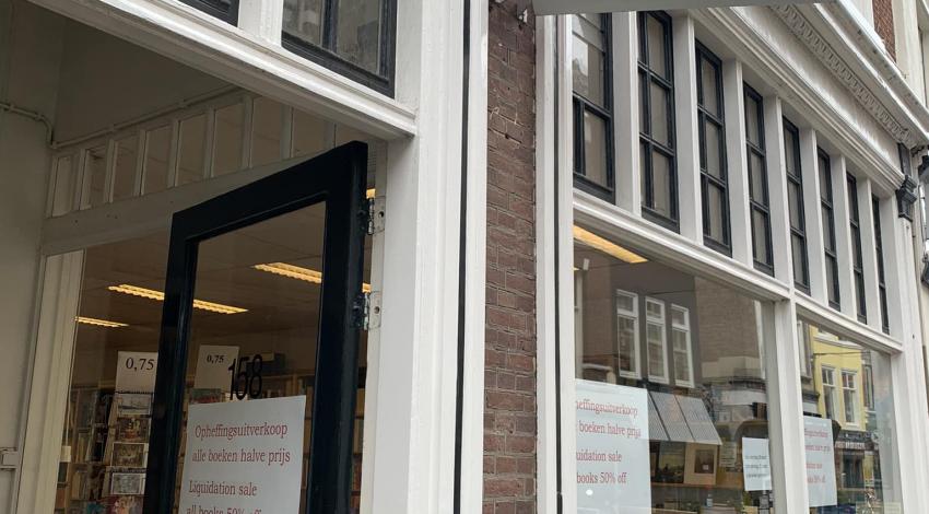 Mooi dus, edoch tegen de vitrinevensters gekleefde papieren deden mijn hart een slag overslaan. Terecht zo bleek toen wat er op geschreven stond door toenemende overbrugging van de scheidende afstand leesbaar was geworden. De woordencombinatie ‘Opheffingsuitverkoop - alle boeken halve prijs’ liet niets te raden over. Het vertrouwde huis sluit binnen zeer afzienbare tijd de deuren.